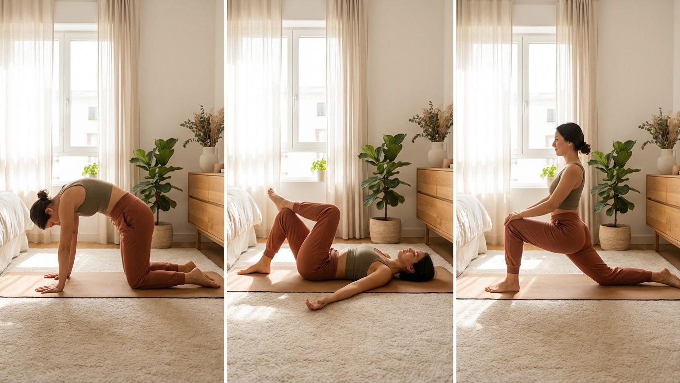 Cette séquence, réalisable en trois minutes, combine étirements et mobilisations douces pour un réveil optimal du dos.